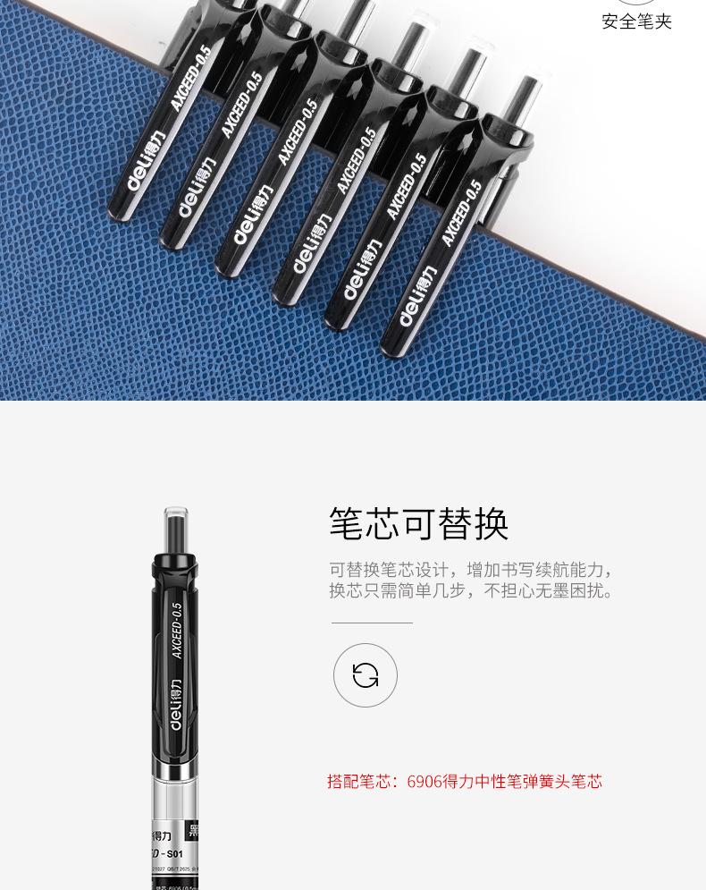 首页> 文体办公/科教用具> 办公用笔> 中性笔/钢笔/圆珠笔> 得力S01 按动中性笔0.5mm弹簧头办公用品商务签字笔 黑色 0.50mm